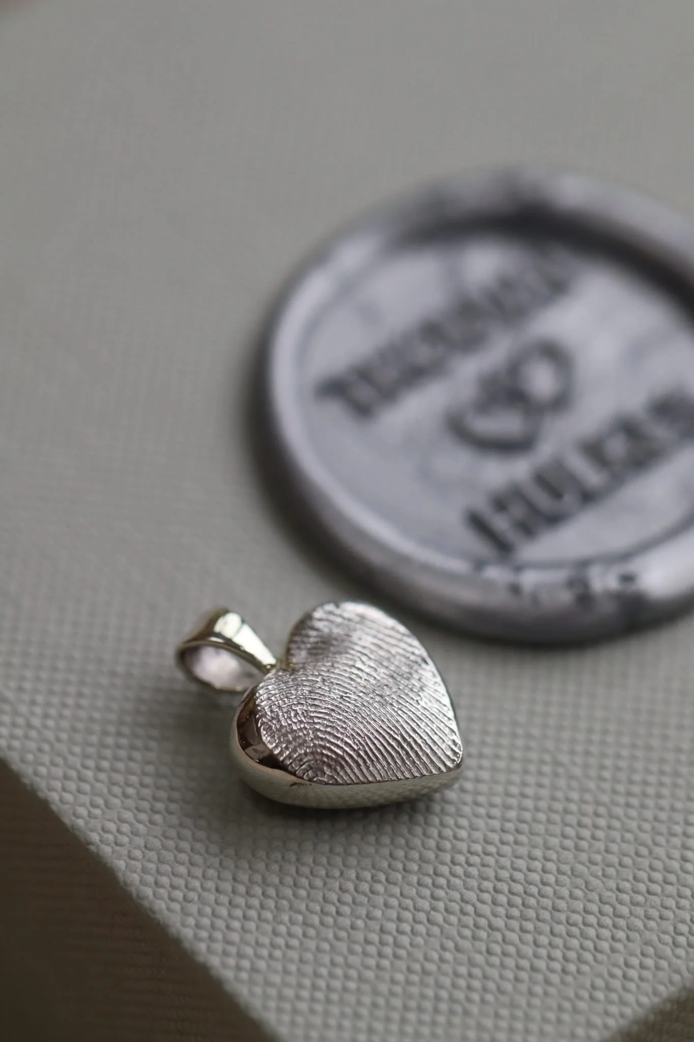 The original solid silver heart pendant by Trouvai, finished with House of Hulkes’ classic fingerprint or pawprint impression.